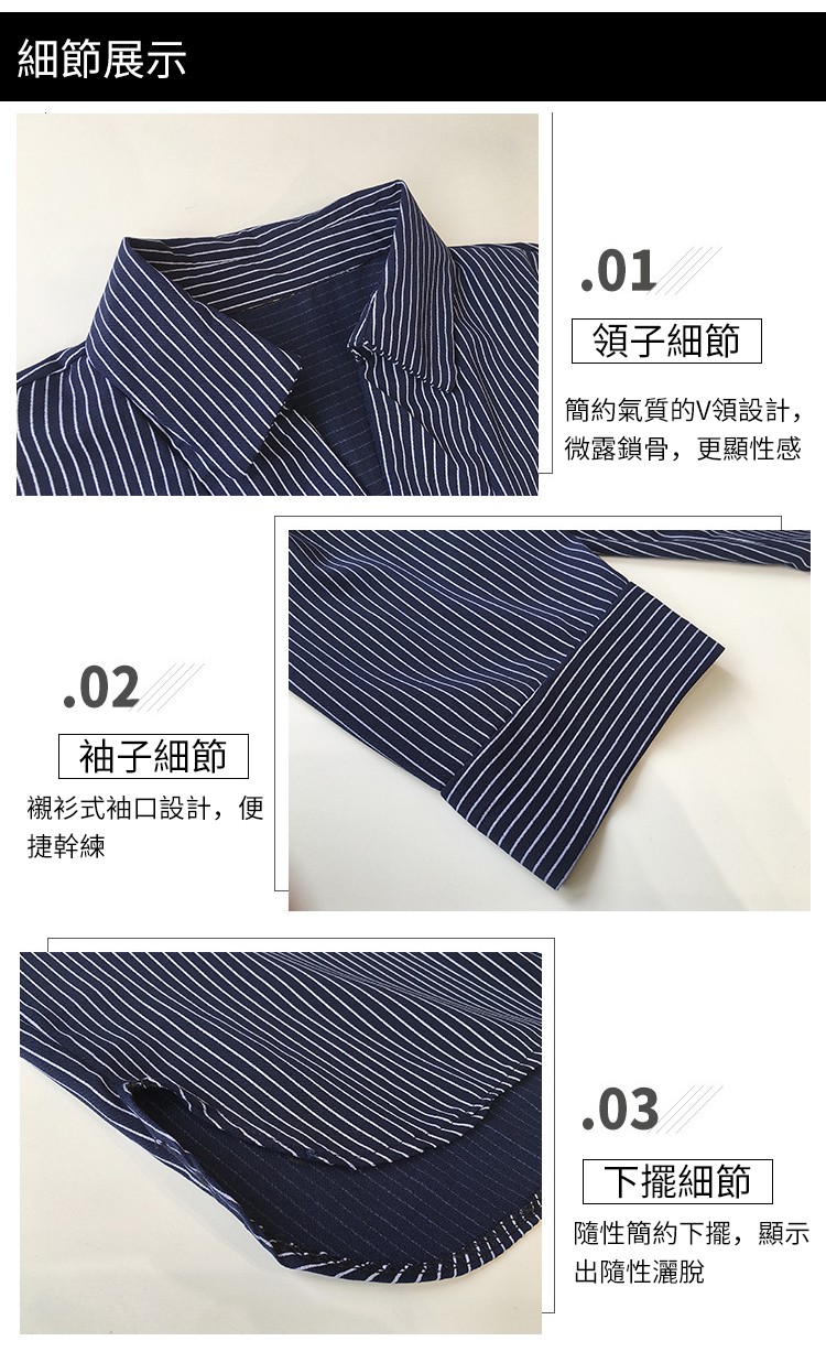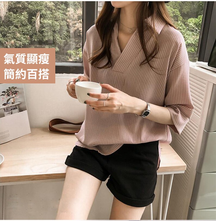 新款韓版寬松顯瘦七分袖條紋襯衫